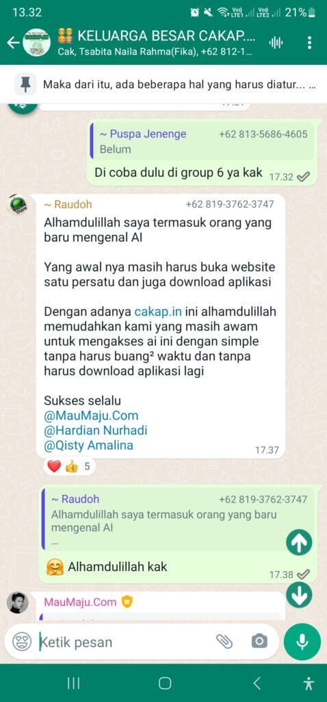 Tim cakap.in itu kaya pahlawan super, selalu siap bantu kapan pun kita butuhkan! Mereka ramah, cepat tanggap, dan pasti bantu selesaikan masalah. Jadi, pake CakapBOT Premium itu kayak punya teman super kuat yang selalu sedia membantu kita