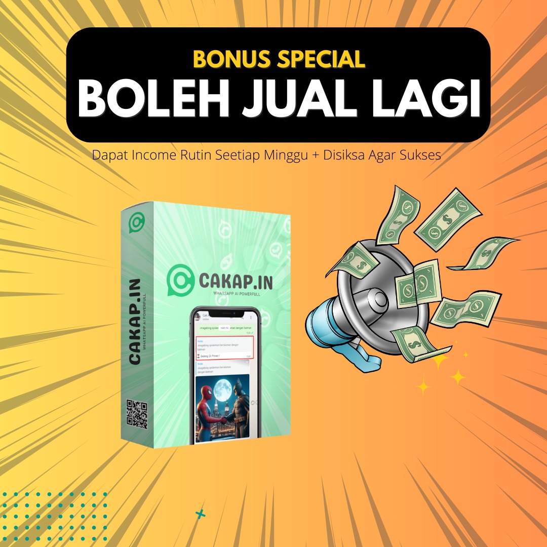 Saya tau pasti anda gak Mau Rugi. Makanya Kita adakan Program Affiliasi, biar anda bisa jualin lagi CakapBOT Premium ini ke temennya, ini bisa gajian rutin tiap minggunya, bahkan tanpa harus jago jualan juga bisa. Seru banget ini, cepet balik modalnya.